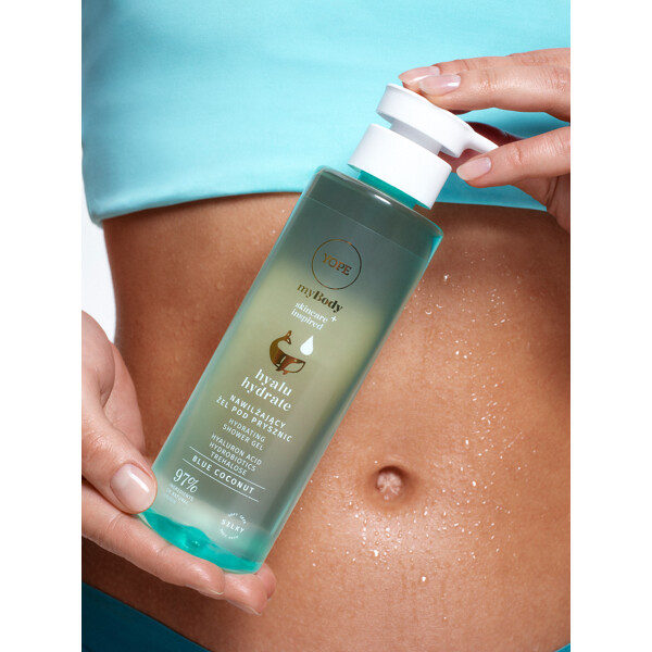 Återfuktande duschgel myBody Hyalu Hydrate med hyaluronsyra, trehalos och hydrobiotika.