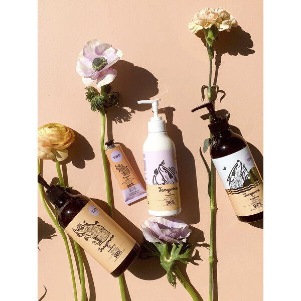 YOPE Tangerine and Raspberry Natural Hand Cream är formulerad för att mjukgöra, konditionera och skydda huden. Den har en frestande doft som kombinerar sötma från hallon med saftiga mandarinaromer, som en sommarfruktshake som fräschar upp och njuter.