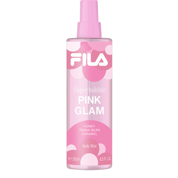 Fila Pink Glam Body Mist - Krämigt förförisk med en touch av mjuk lyxEn len och inbjudande doft som känns som en mjuk filt mot huden. Den öppnar med krämig karamell och mjölkiga toner, följs av ett hjärta av gyllene honung och tonkaböna. Basen vilar på mjuk vanilj och vit mysk, vilket skapar en rund, varm och omslutande doftupplevelse.Perfekt för dig som älskar subtil sötma med en sofistikerad twist.