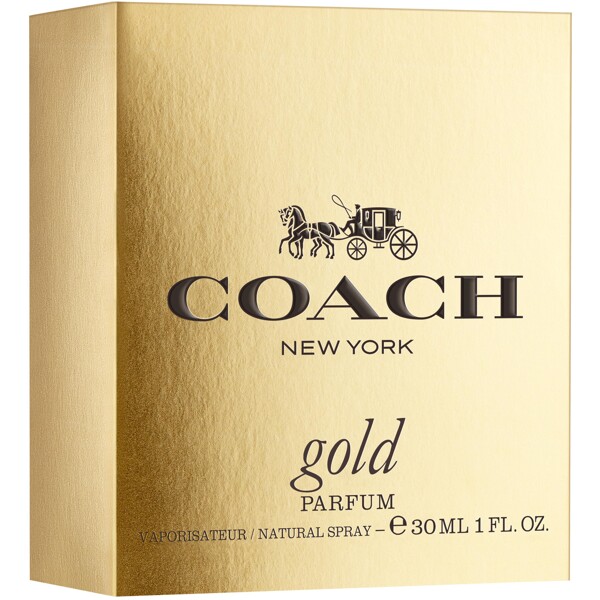 Coach Gold är formgiven med samma känsla för exklusivitet som doften förmedlar. Flaskan skimrar i en transparent guldton och pryds av en ikonisk ”C”-charm tillsammans med en iriserande hangtag – detaljer som återspeglar Coachs hantverksmässiga arv. Ytterförpackningen, med sitt präglade häst-och-vagn-emblem i guld, fulländar den lyxiga helheten.