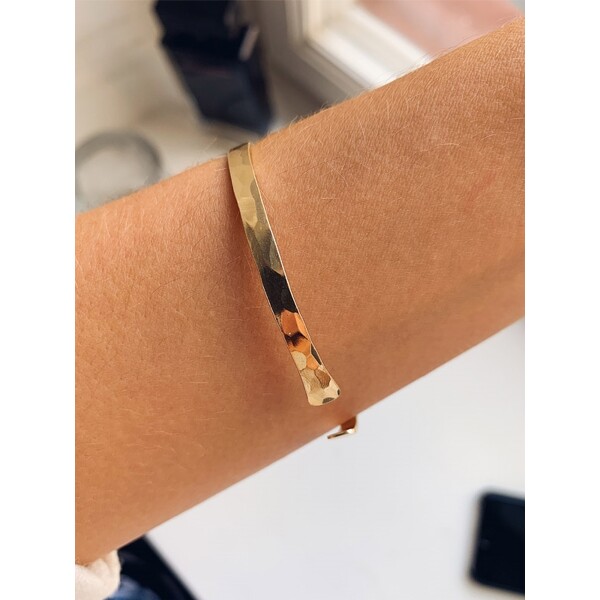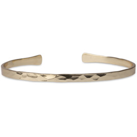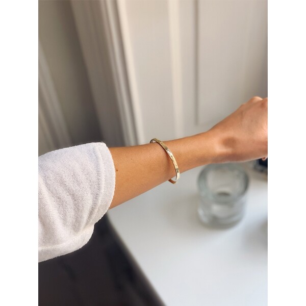Ett guldpläterat handgjort hårt armband som är handhamrat för att få ett fint mönster på ovansidan. Armbandet går att böja till så att det passar dig perfekt.