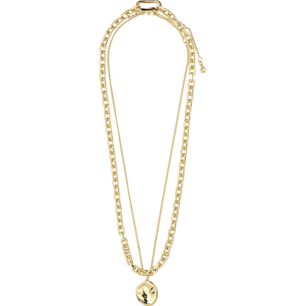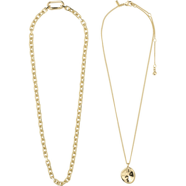 Med de guldpläterade SPARKLE-halsbanden från Pilgrim får du dina nya favoritaccessoarer. En blank cable chain med ett dekorativt karbinlås och en slank coin-kedja med ett reflekterande hänge, som liknar ett litet fingeravtryck, ger din look en personlig touch och skapar den perfekta kombinationen av street-ready vibes och dreamy elegance.