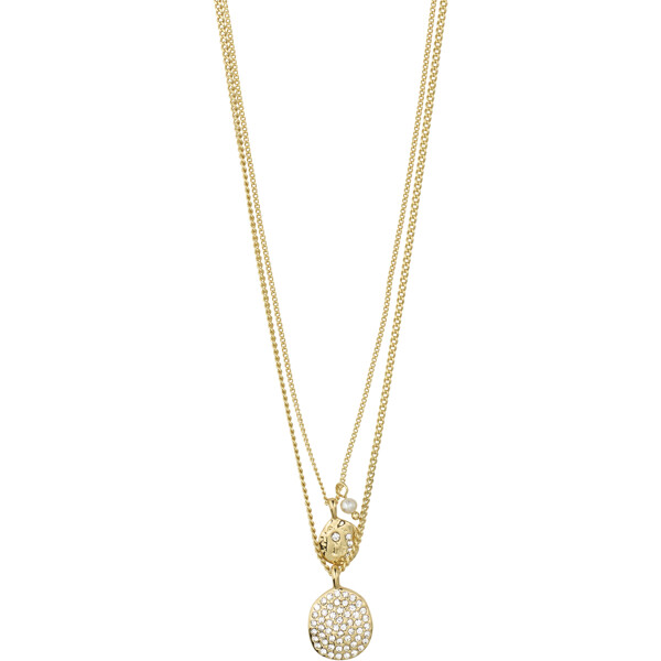 De guldpläterade SHIFT-halsbanden från Pilgrims Moments of Change-kollektion är skapade för layering-lovers. 2-i-1-setet kombinerar två coin-kedjor med kristallprydda hängen och en liten sötvattenspärla som ger en organisk, free-spirited feel. Använd dem tillsammans för en drömsk lager-på-lager-look eller styla dem separat för en minimalistisk touch.