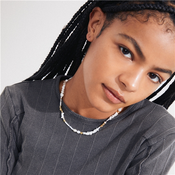 Äkta färskvattenpärlor, glasstenar och halvädelstenarna White Turquoise och Rose Quartz ger din sommarstil en boost. Små guldbelagda detaljer ger dig den perfekta sommarglöden.
