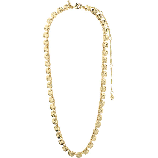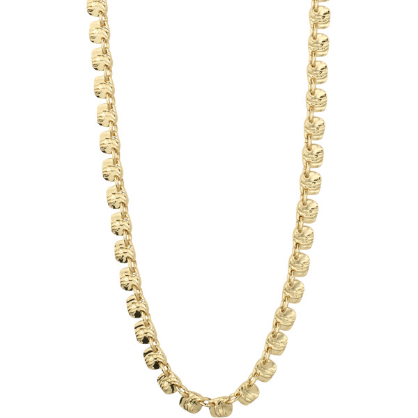 Det guldpläterade SENSE halsbandet från Pilgrim är ett måste i din smyckessamling – delikat, med en cool twist. De små fyrkantiga mynten med rå textur reflekterar ljuset och ger en unik glöd åt din look. Ett vardagssmycke som kan stylas på otaliga sätt!