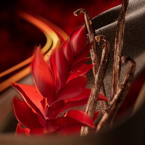 Den öppnar med en elektrifierande toppnot av röd ingefära, en livfull och intensiv ton som genast fångar uppmärksamheten. Hjärtat domineras av varm och rik vaniljboubon, som omsluter bäraren i en oemotståndlig och lyxig känsla. Basnoten består av robust läder, vilket ger parfymen en rå, maskulin karaktär som är både elegant och vild.